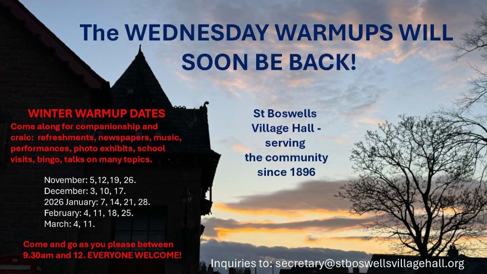 Any inquiry may be sent to the secretary of the village hall committee, at: secretary@stboswellsvillagehall.org